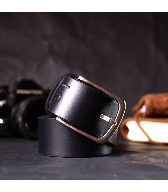 Стильный ремень под джинсы из натуральной кожи GRANDE PELLE 11684 Черный