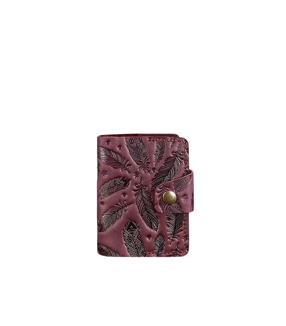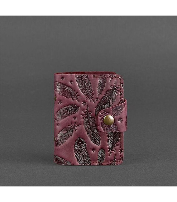 Описание Женский кожаный кард-кейс 7.1 (Книжечка) бордовый с перьями Crazy Horse
