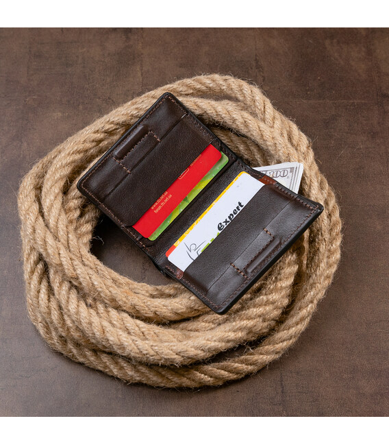 Маленький, но при этом очень стильный аксессуар. Портмоне с ячейками для карточек из натуральной итальянской кожи высочайшего качества. Аксессуар имеет оригинальный дизайн с вставками коричневого цвета на тон светлее, что добавляет модели новизны и креативности. Аксессуар станет находкой для тех, кто хочет выделиться из толпы и подчеркнуть свою индивидуальность. Портмоне имеет одно отделение для купюр. Советуем модель поклонникам аксессуаров с минимальным дизайном и тем, кто предпочитает не носить много налички. Изделие упаковано в войлочный чехол. Портмоне станет прекрасной идеей для подарка.