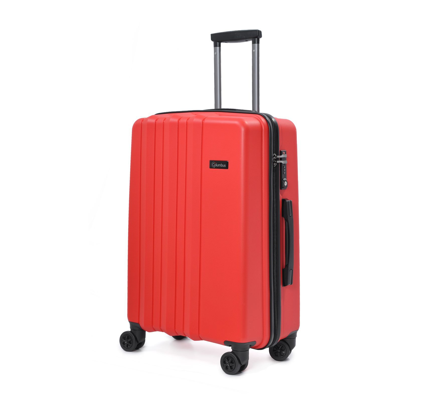 Сверхлегкий и прочный чемодан на 8-ми (4х2) колесах TM Columbus. Оснащен кодовым замком системы TSA, телескопической алюминиевой ручкой с фиксаторами. Внутри обшит тканью, имеет 2 отделения, разделяются диафрагмой и карман на молнии для мелких вещей; эластичные пояса для фиксации вещей.