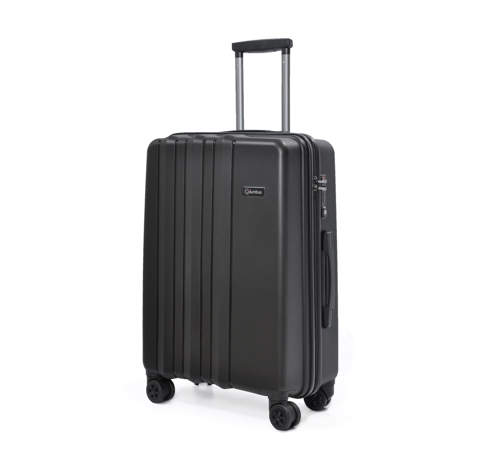 Сверхлегкий и прочный чемодан на 8-ми (4х2) колесах TM Columbus. Оснащен кодовым замком системы TSA, телескопической алюминиевой ручкой с фиксаторами. Внутри обшит тканью, имеет 2 отделения, разделяются диафрагмой и карман на молнии для мелких вещей; эластичные пояса для фиксации вещей.