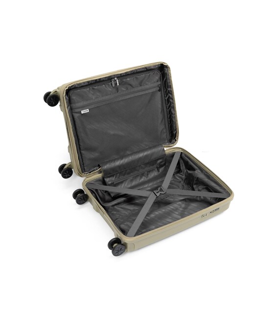 Аксессуар оснащен встроенным кодовым замком с системой TSA. Внутри два отделения оснащены прижимными ремнями, в одном из которых есть сетчатая крышка на молнии. Также, поддерживать чистоту и свежите чемоданы поможет съемная подложка, которую можно постирать при 30°.