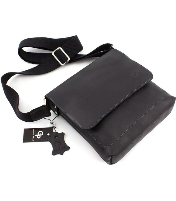 Сумка Месенджер для чоловіків 754110 Grande pelle чорний крейзі. Сумка Месенджер Gp Grande Pelle виконана виключно із цільної шкіри. Поєднує в собі мінімалізм та функціональність.