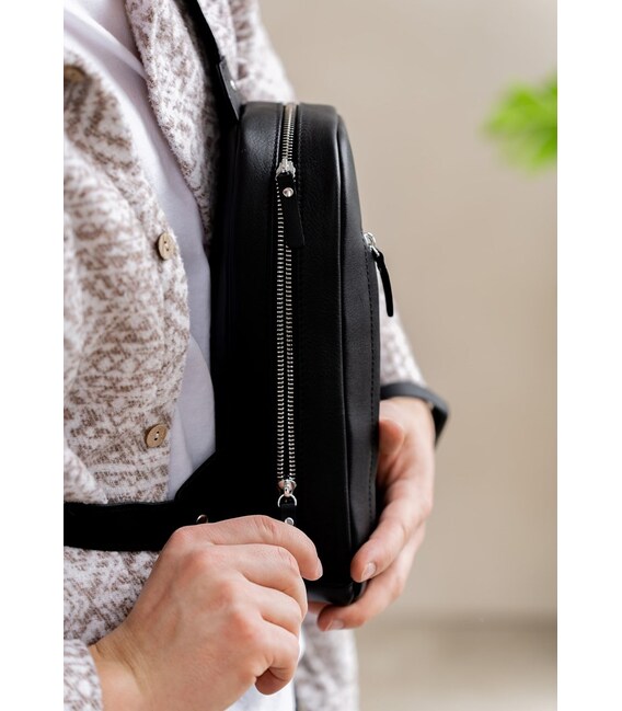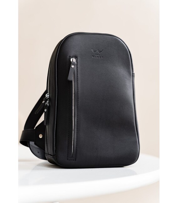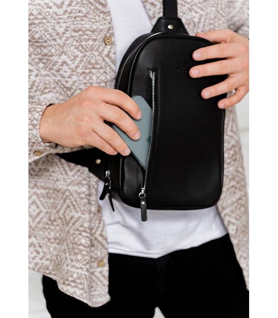 Описание Мужская кожаная сумка Chest bag черная