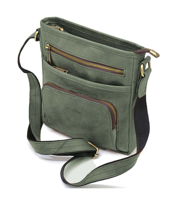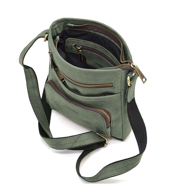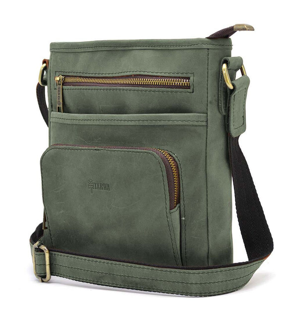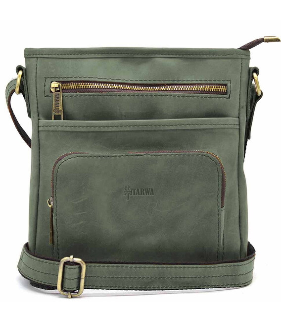 Чоловіча шкіряна сумка з кишенею RE-1303-3md TARWA зелена з кінської шкіри від українського бренду TARWA. Виріб на одне відділення, яке застібається на блискавку. Може вміщати планшет, гаманець, павербанк та ін.