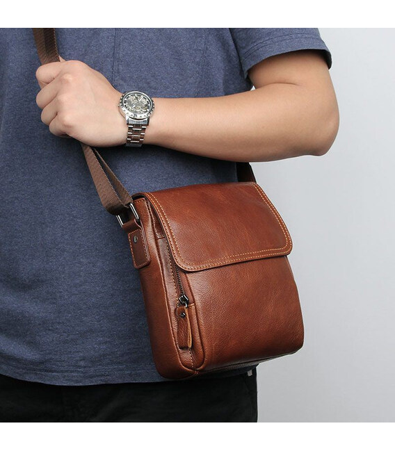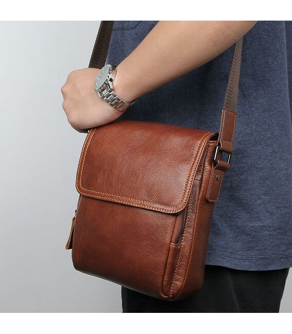 Маленька сумка через плече, для чоловіків, з натуральної телячої шкіри JD1033X, бренду John McDee. Модель зручна для щоденного використання.