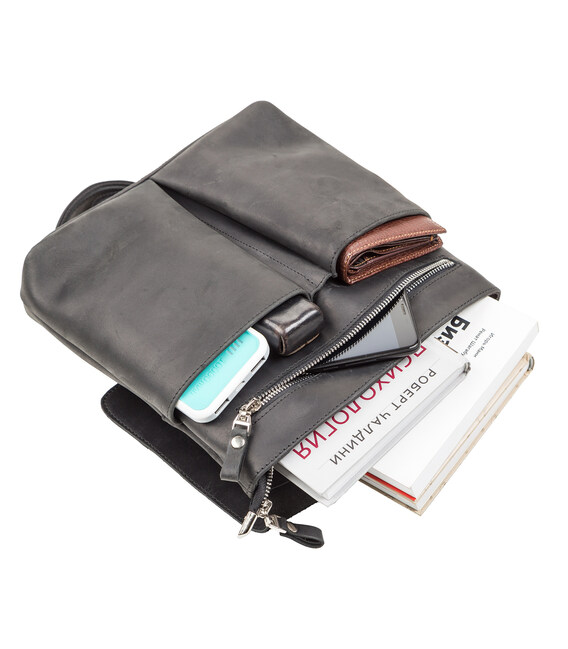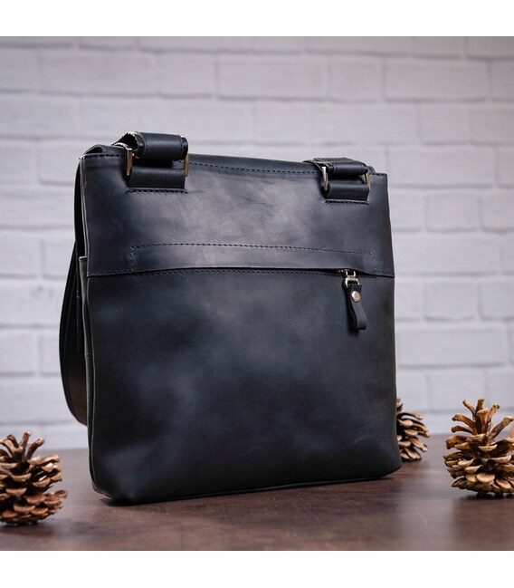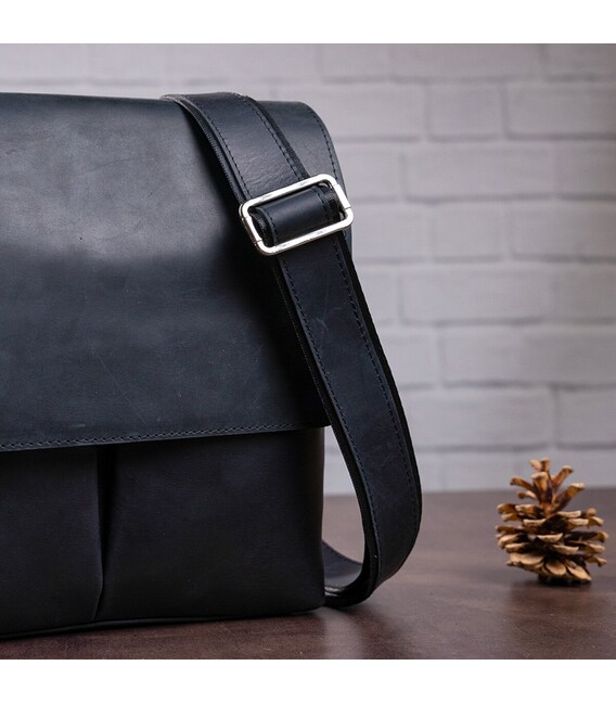 Сумка средних размеров из натуральной винтажной кожи для мужчин, которые ежедневно носят с собой много мелких вещей (ключи, телефон, блокнот, портмоне, небольшой планшет, и т.д.). Аксессуар достаточно вместительный для своих размеров, закрывается при помощи клапана на магнитах, для дополнительной защиты вещей на молнию.