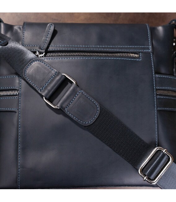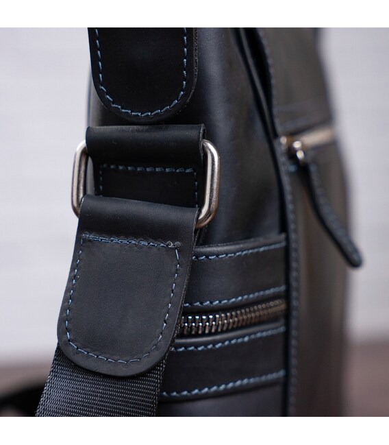 Вместительная мужская кожаная сумка, из натуральной винтажной кожи, через плечо, среднего размера с клапаном. В нее можно положить тетрадь, планшет, телефон и другие мелочи.