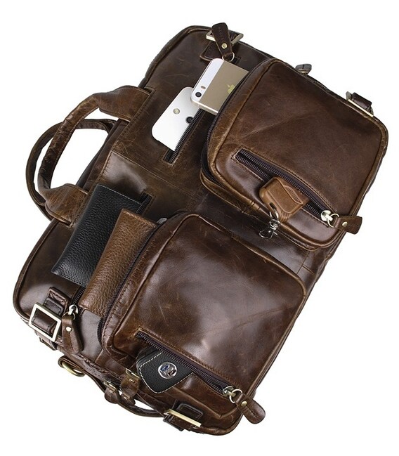Описание Кожаная сумка трансформер для работы поездок и города Vintage 14074 Коричневая
