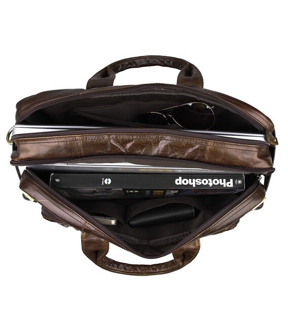Изделие выполнено из натуральной высококачественной кожи коричневого цвета. Материал приятный на ощупь, имеет выразительный винтажный характер и хорошо подходит для активного ежедневного использования. Благодаря универсальному дизайну модель гармонично дополняет деловой, повседневный и дорожный стиль.