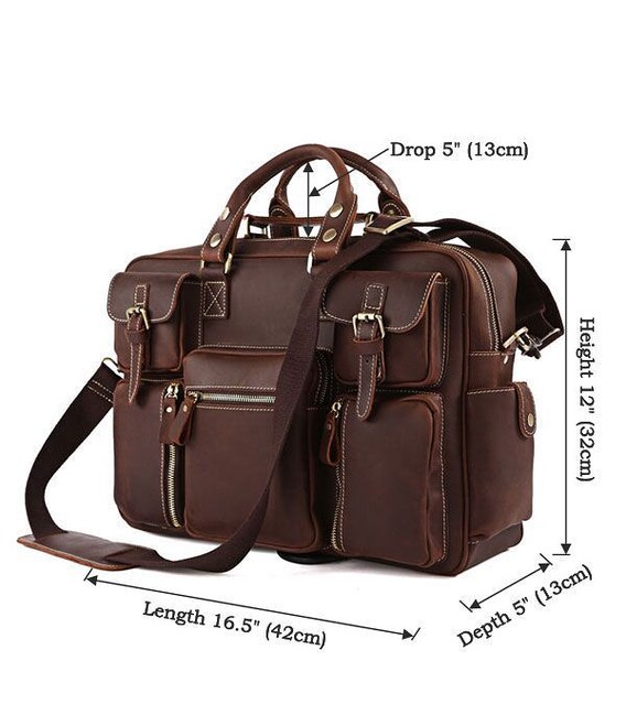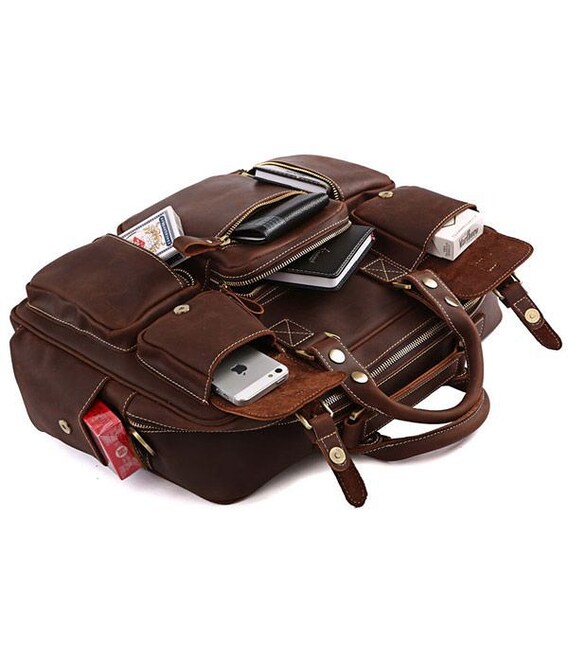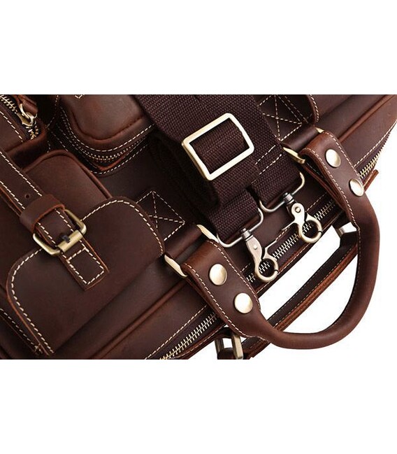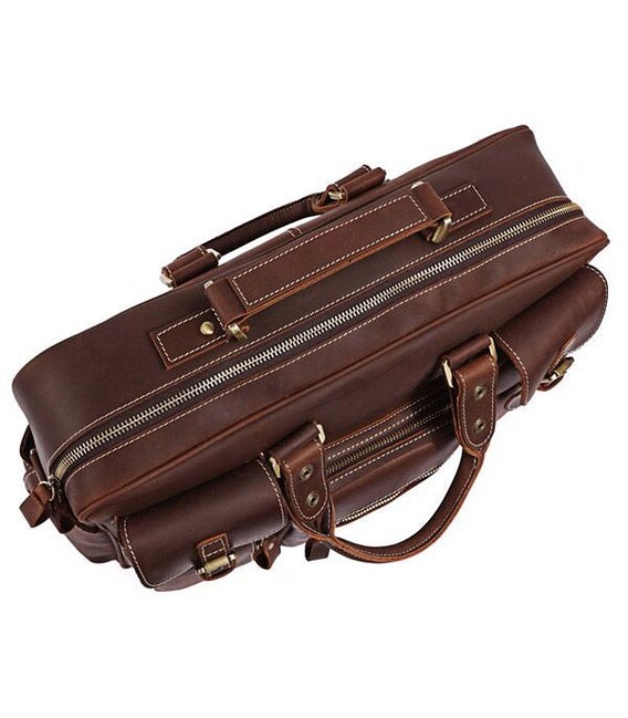 Представляем Вам отличную кожаную сумку из толстой качественной винтажной кожи. Это изделие можно отнести как к повседневным сумкам так и к кожаным дорожным сумкам(саквояжам). Сумка отлично исполнена - выглядит просто супер. По функциональности тяжело придумать лучшую сумку, она имеет множество карманов и очень удобна в эксплуатации, ее можно использовать для ноутбука.