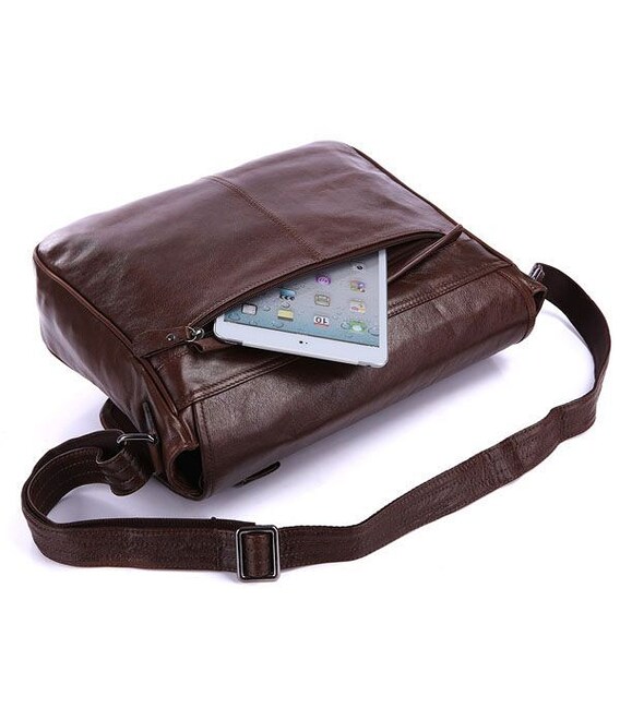 Отличная вместительная кожаная мужская сумка через плече. Модель очень вместительна и при этом выглядит не громоздко. Сумка сделана из высококачественной натуральной кожи и надежной фурнитуры.