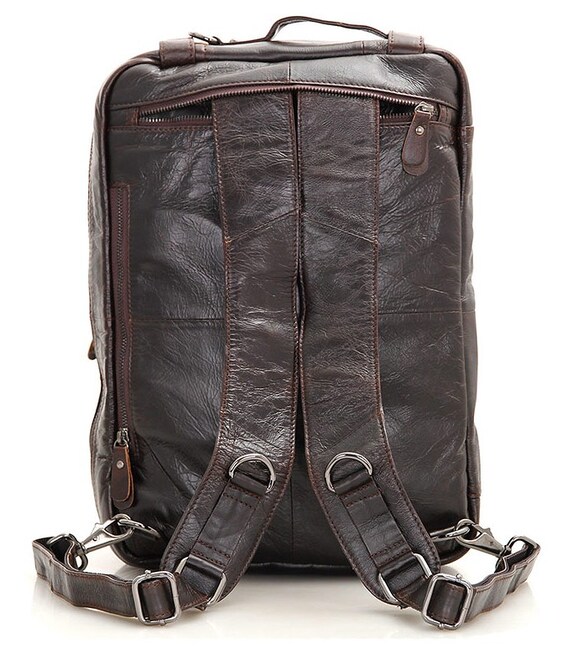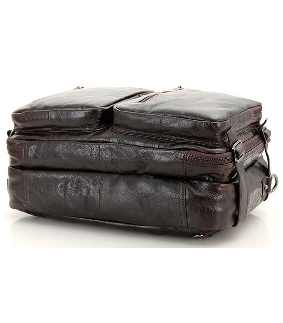 Мужская сумка-трансформер из натуральной кожи. При изготовлении аксессуара использовалась надежная фурнитура и качественная подкладка. Сумку можно носить в руке, через плечо, а также как рюкзак. Сумка имеет благородных коричневый цвет и стильный внешний вид. В такой аксессуар поместится большинство вещей нужных современному человеку.
