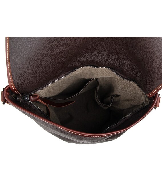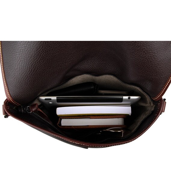 Очень красивая мужская сумка больших размеров. Аксессуар выполнен из натуральной высококачественной кожи приятной на ощупь. Цвет фурнитуры: темное серебро. Молнии металлические. Сумка аккуратно прошита прочной нитью в светлых тонах. Закрывается аксессуар при помощи клапана и хлястика на магнитной кнопке. Под клапаном находится два больших накладных кармана и отделение на молнии. Подкладка выполнена из прочного текстильного материала.