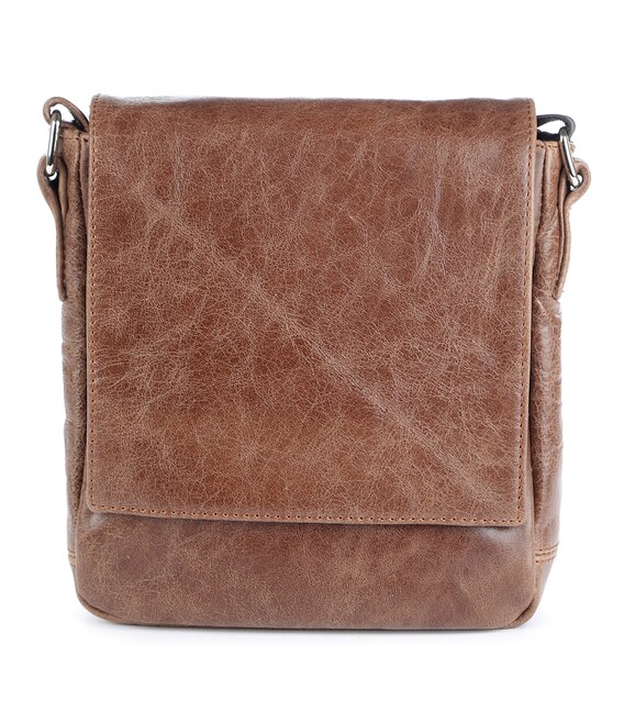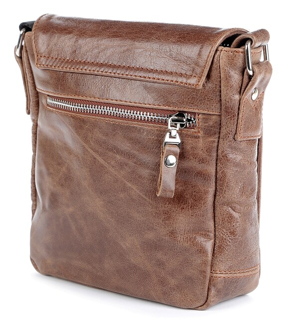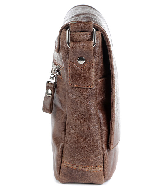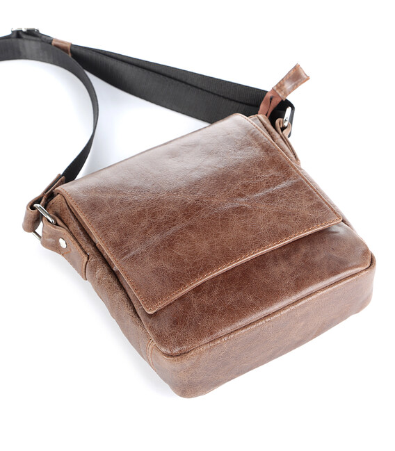Добротная мужская сумка из натуральной высококачественной кожи. Цвет фурнитуры: серебро. На задней внешней стороне находится отделение на молнии. Сумка закрывается при помощи клапана на двух скрытых магнитах и молнией. Под клапаном расположен накладной карман. Сумка носиться через плечо про помощи регулируемого текстильного плечевого ремня.