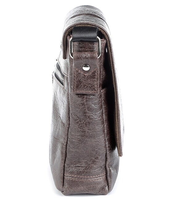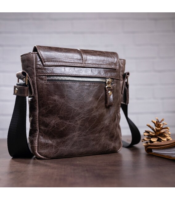 Оригинальная мужская сумка из натуральной высококачественной винтажной кожи. Цвет фурнитуры: серебро. На задней внешней стороне находится отделение на молнии, в которое можно поместить вещи первой необходимости. Сумка закрывается при помощи клапана на двух скрытых магнитах и молнией. Под клапаном расположен накладной карман. Сумка носиться через плечо про помощи регулируемого текстильного плечевого ремня. Такой аксессуар является превосходным решением для подарка мужчине к любому празднику.