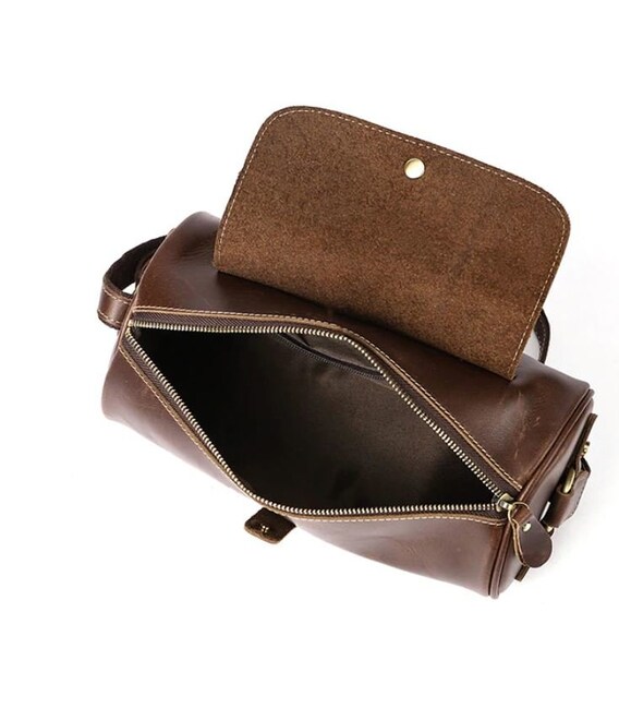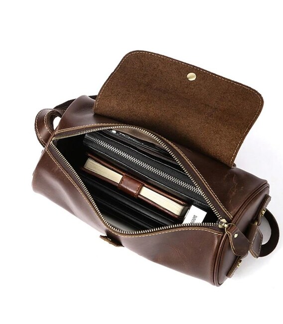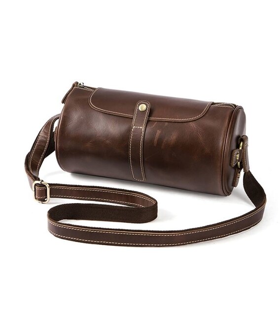 Оригинальная мужская сумка закругленной формы. С такой сумкой вы точно выделитесь из толпы. Сумка прошита по периметру светлой нитью. Фурнитура, используемая в модели золотистого цвета. Сумка изготовлена из натуральной кожи высокого качества. Хороший вариант для поездок. Все самое важно вы легко поместите в эту сумку. Модель упакована в тканевый мешок, что защищает ее от пыли и удобно при хранении. Отличный вариант для подарка любому мужчине.