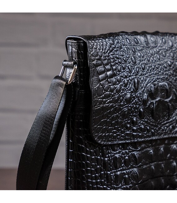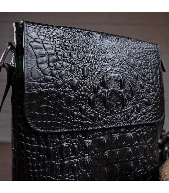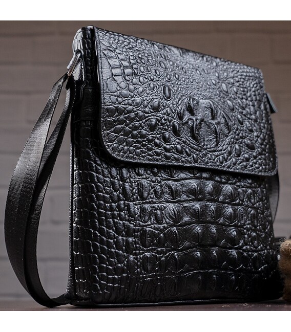 Солидная мужская вертикальная сумка высокого качества. Аксессуар подходит на работу и на встречи. Сумка удобно носится на плече. Аксессуар имеет тиснение под кожу крокодила и носится довольно долго и не капризный в уходе. Модель из кожи рептилии оценит каждый мужчина. Будет прекрасным подарком. Сумка упакована в тканевой чехол, что защищает ее от пыли и износа.
