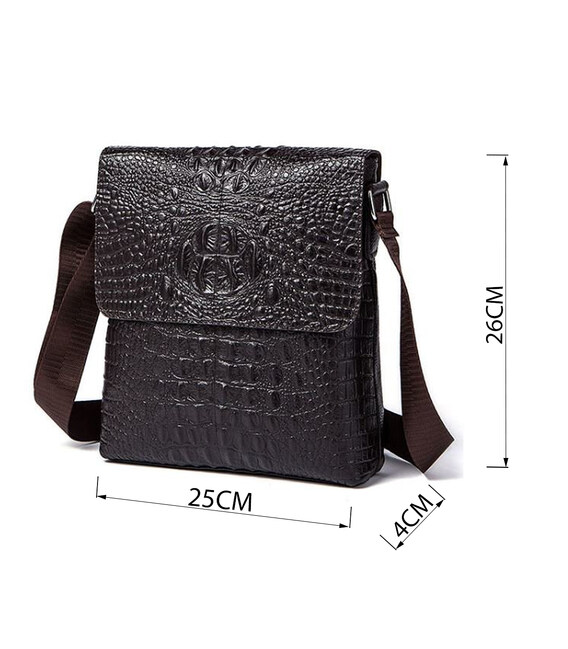 Солидная мужская вертикальная сумка высокого качества. Аксессуар подходит на работу и на встречи. Сумка удобно носится на плече. Аксессуар имеет тиснение под кожу крокодила и носится довольно долго и не капризный в уходе. Модель из кожи рептилии оценит каждый мужчина. Будет прекрасным подарком. Сумка упакована в тканевой чехол, что защищает ее от пыли и износа.