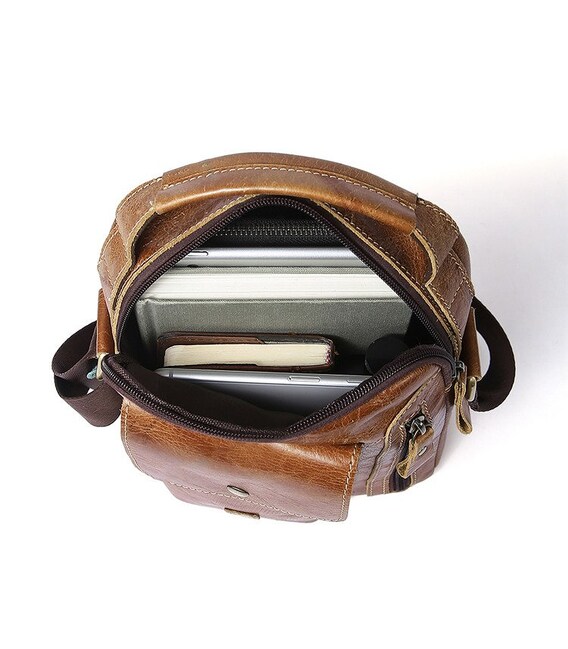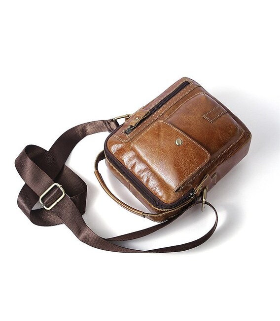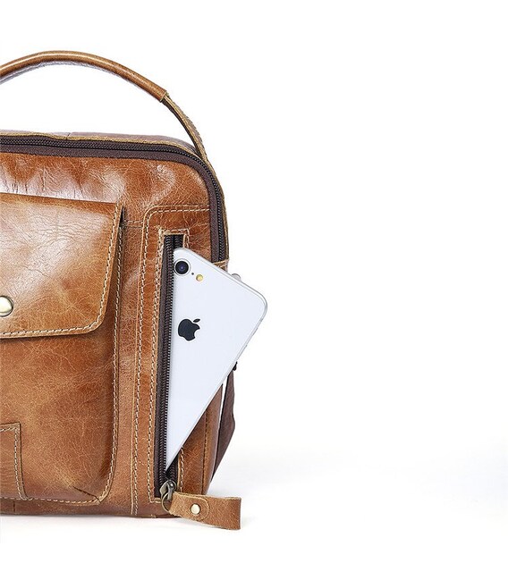 Солиднейшая сумка из натуральной кожи светло-коричневого цвета. Аксессуар прошит по краям нитью бежевого цвета. Вы можете носить сумку как на работу , так и на встречи. Есть ручка для носки на плече и кожаная ручка, чтобы носить в руке. Аксессуар дополнен разнообразными карманами для удобства. Кожаная сумка всегда служит намного дольше, чем текстильная или из заменителей. Такая сумка будет отличным дополнением к вашему стилю и закончит ваш образ.