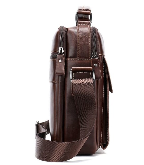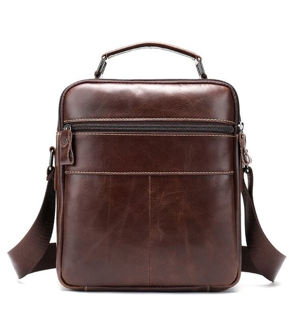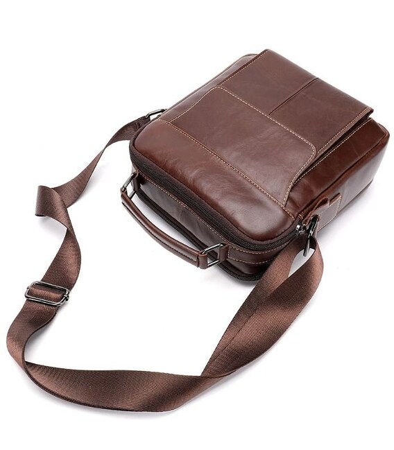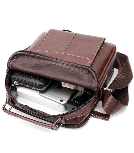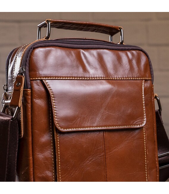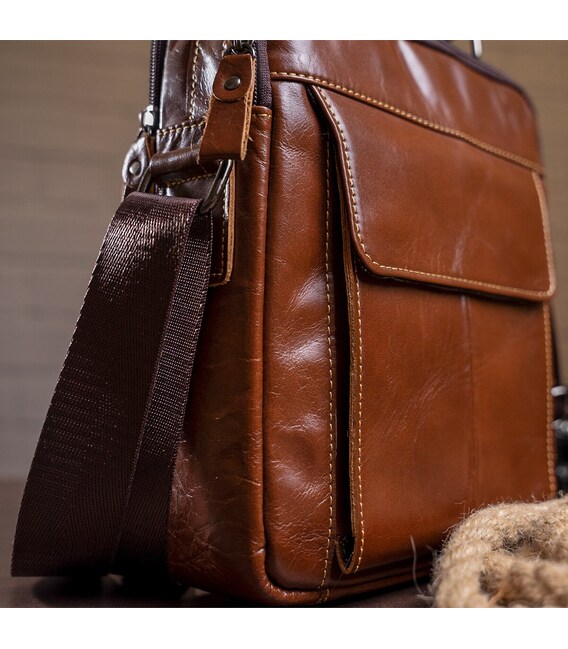 С такой сумкой на каждый день вам будет очень удобно. Аксессуар изготовлен из натуральной кожи хорошего качества. По краям прошит светлой нитью. Сумка имеет отличный функционал идеальный для любого мужчины. В сумку поместится небольшая бутылка воды, ежедневник и планшет. Аксессуар будет отличным подарком для близкого.