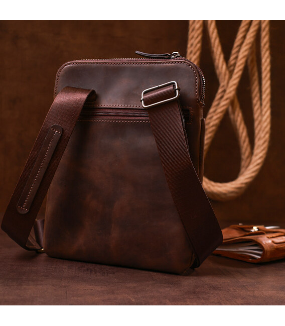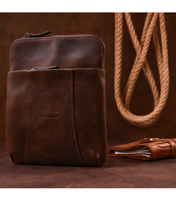 Описание Стильный мужской мессенджер из винтажной кожи Shvigel 11180 Коричневый
