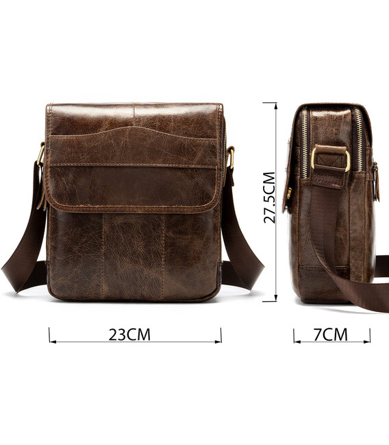Мужская кожаная сумка оптимальных размеров на каждый день. Прекрасный вариант на работу. Аксессуар выполнен в гладкой коже, которая не прихотлива в уходе и долго носится. Модель оснащена всем необходимым функционалом. Стоит отметить, что сумка имеет два отделения для вашего удобства. Аксессуар дополнен качественной фурнитурой золотистого цвета. Такая сумка будет идеальным подарком для любого мужчины.