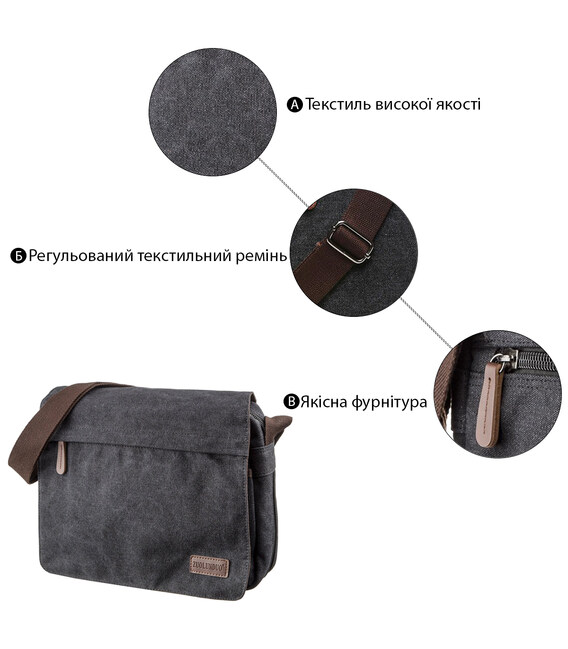 Описание Сумка почтальонка текстильная Vintage 20088 Черная