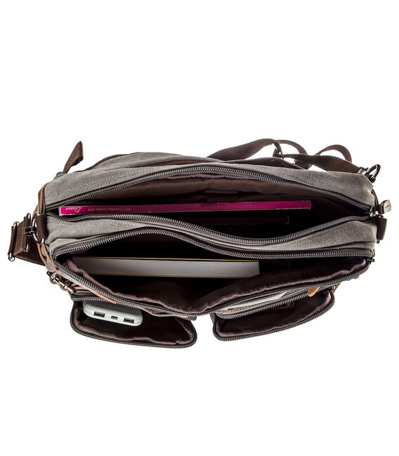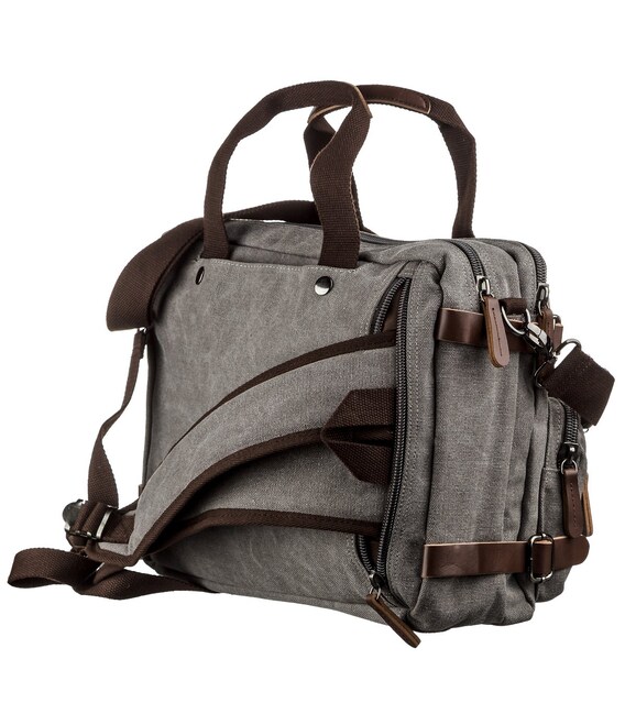 Сумка-трансформер удобнейший аксессуар, который сочетает в себе 2 вещи. Сумка не тяжелая. Выполнено изделие из качественного и плотного текстиля. Сумка легко превращается в рюкзак достаточно всего лишь достать лямки сзади из-под молнии. Сумка достаточно вместительная и прекрасно подойдет в дорогу. В изделие поместится ноутбук диагональю 15 дюймов и другие ваши необходимые вещи. Если вы не хотите переплачивать за натуральную кожу такая модель будет неплохой альтернативой.