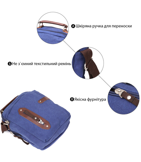 Описание Сумка вертикальная текстильная Vintage 20156 Синяя