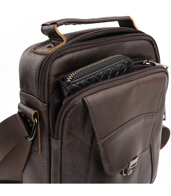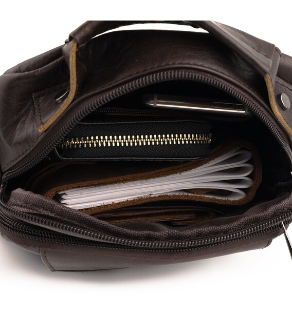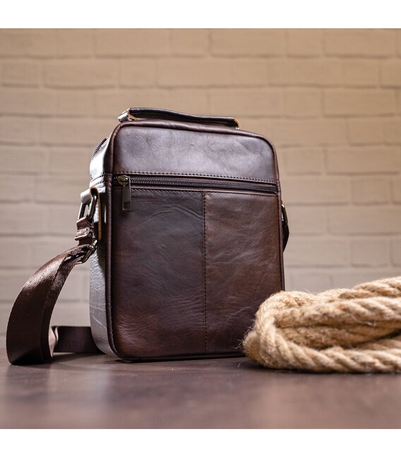 Качественная мужская сумка из натуральной кожи компактного размера. Изделие идеально подойдет на каждый день. В модель легко поместятся все необходимые вещи. Сумка подчеркнет ваше отменное чувство стиля. Изделие будет идеальным подарком для любого мужчины.