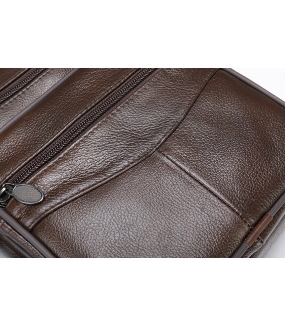 Качественная мужская сумка из натуральной кожи. Изделие выполнено из зернистой кожи коричневого цвета. Внутри аксессуара плотная текстильная подкладка коричневого цвета. Сумка будет вашим идеальным вариантом на каждый день. Модель очень удобная. Классический дизайн никогда не выйдет из моды. Такая сумка подойдет под любые вещи из вашего гардероба. Модель дополнена качественной фурнитурой в дизайн изделия.
