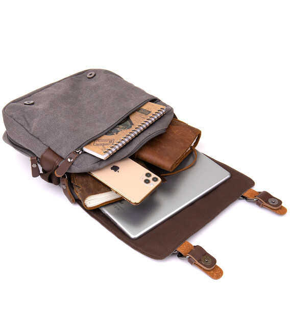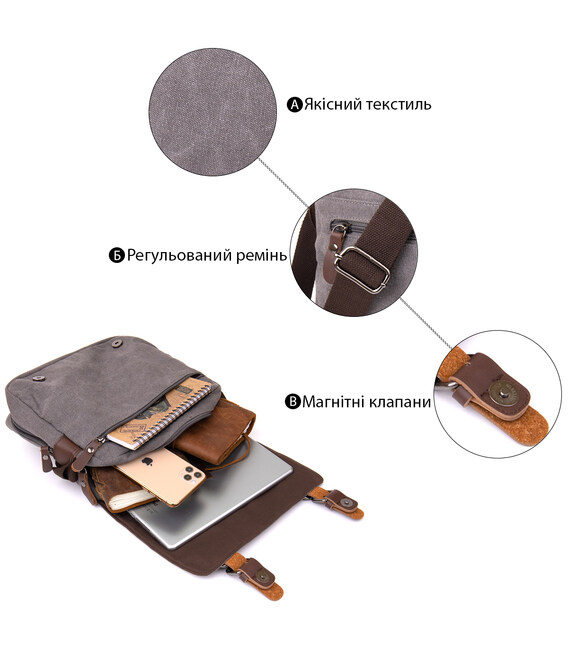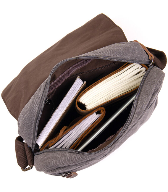 Описание Сумка почтальонка текстильная Vintage 20605 Серая