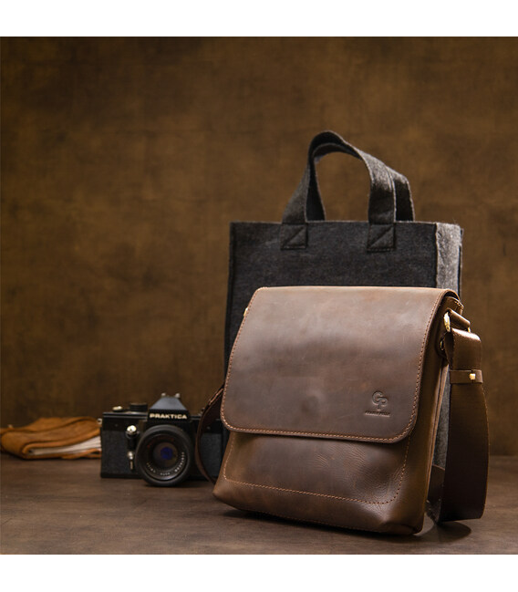 Описание Мужская сумка-мессенджер GRANDE PELLE 11432 Коричневый