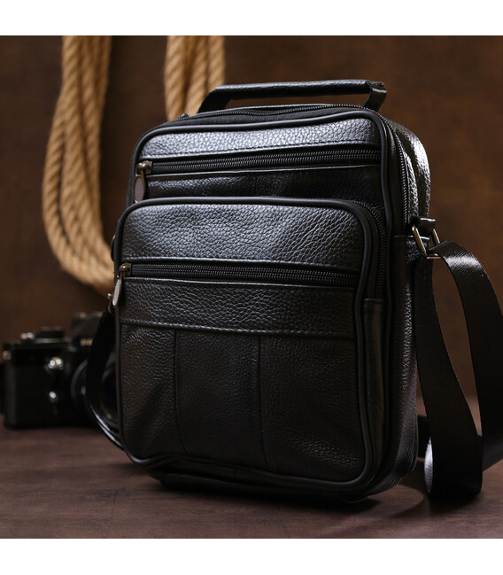 Описание Мужская сумка из натуральной кожи Vintage 20449 Черный