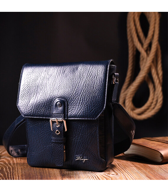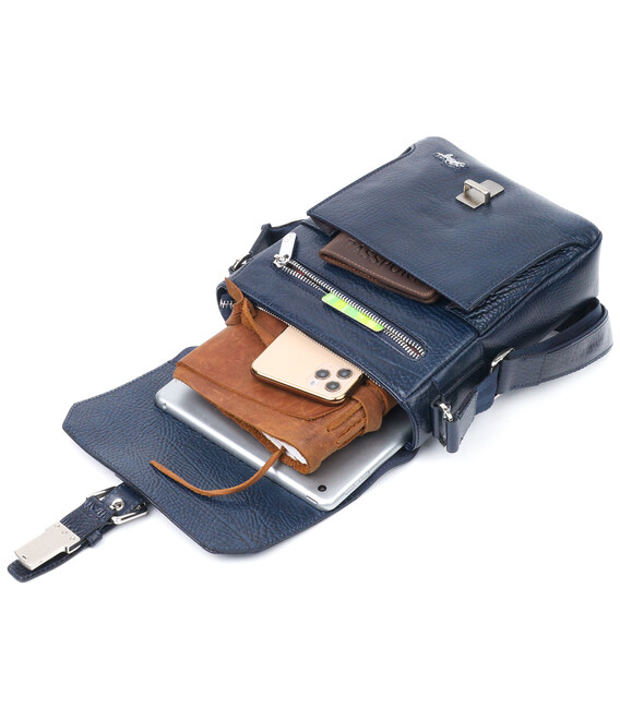 Описание Практичная мужская сумка KARYA 20840 кожаная Синий
