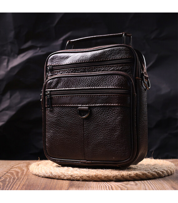 Описание Практичная мужская сумка кожаная 21272 Vintage Коричневая