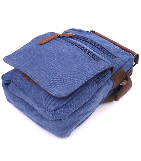 Отличная мужская сумка из плотного текстиля 21228 Vintage Синяя