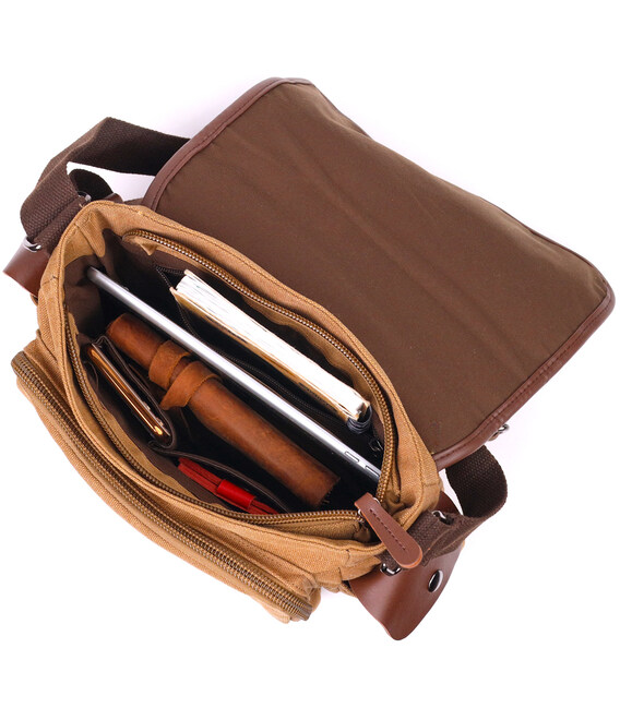 Описание Функциональная мужская сумка с клапаном из текстиля 21249 Vintage Коричневая