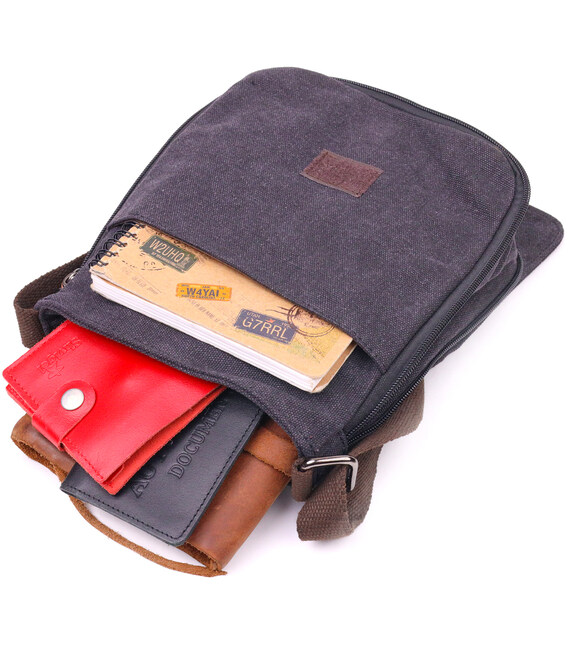 Описание Вертикальная мужская сумка текстильная 21265 Vintage Черная