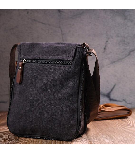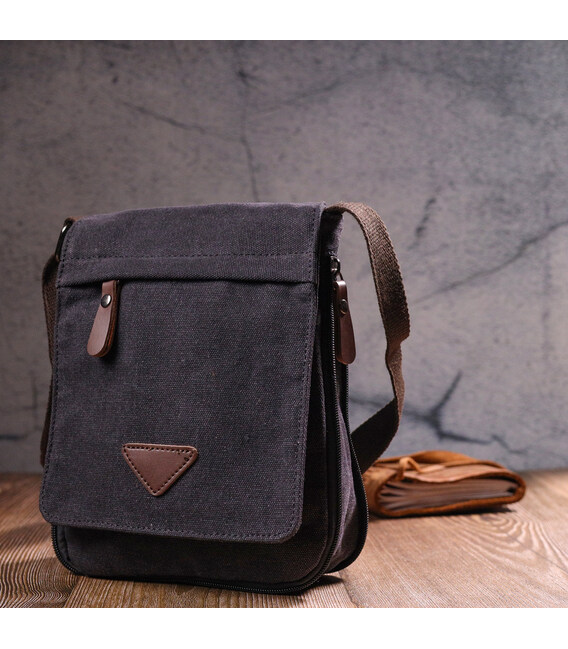 Вертикальная мужская сумка текстильная 21265 Vintage Черная