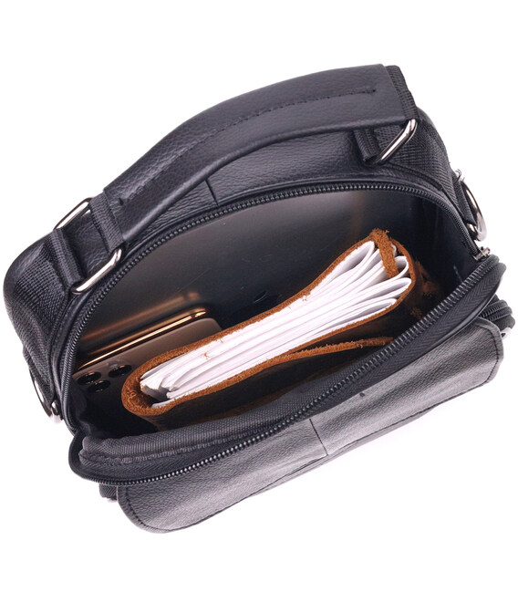 Описание Практичная мужская кожаная сумка 21396 Vintage Черная
