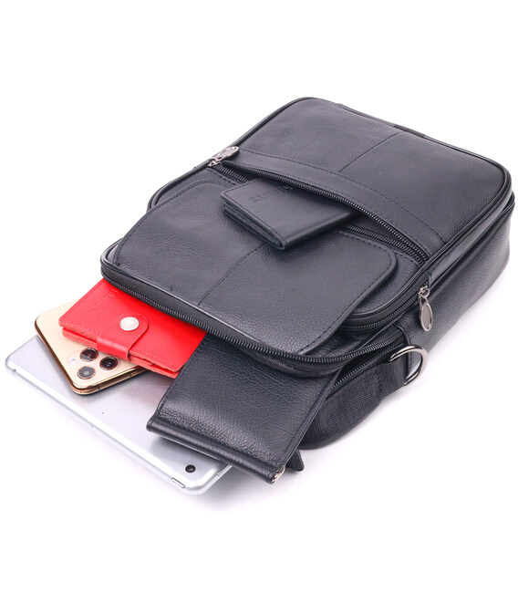 Практичная мужская кожаная сумка 21396 Vintage Черная
