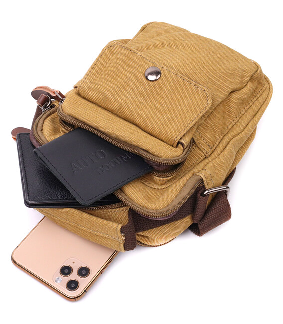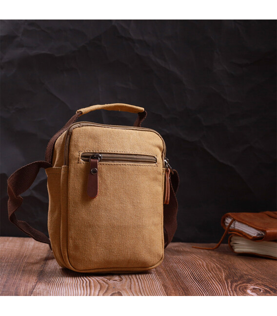 Описание Отличная небольшая мужская сумка из плотного текстиля Vintage 22222 Песочный