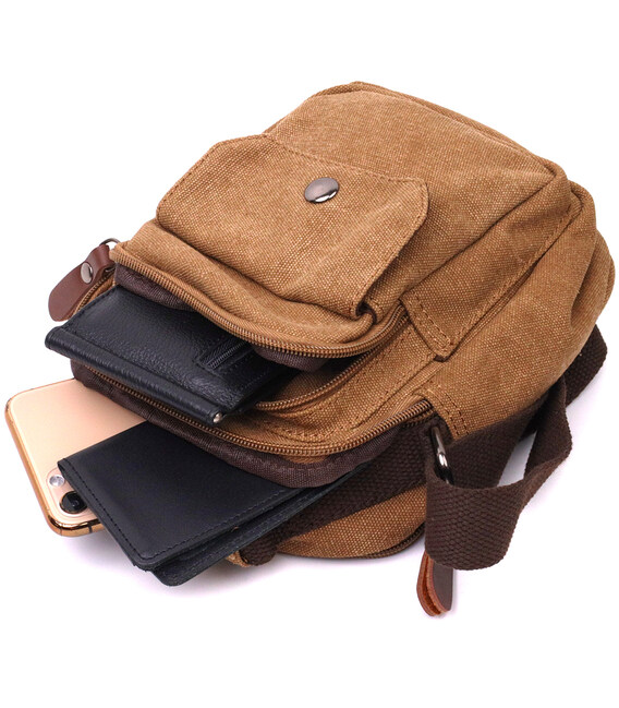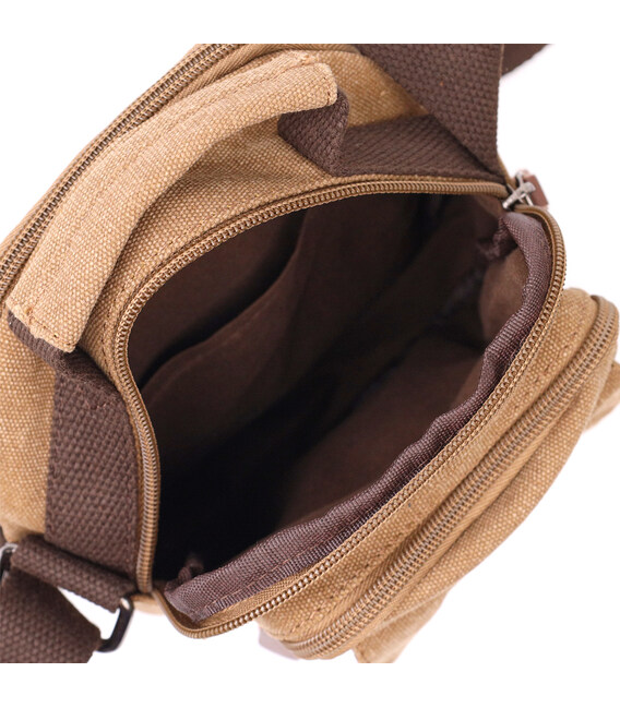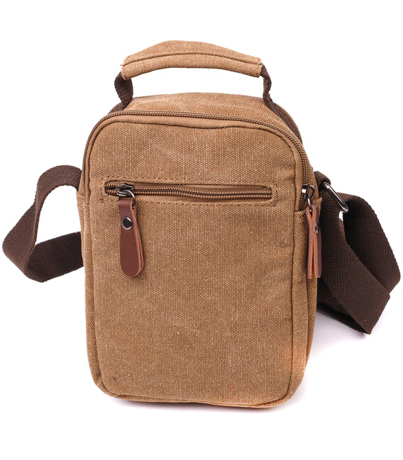 Практичная небольшая мужская сумка из плотного текстиля Vintage 22220 Коричневый