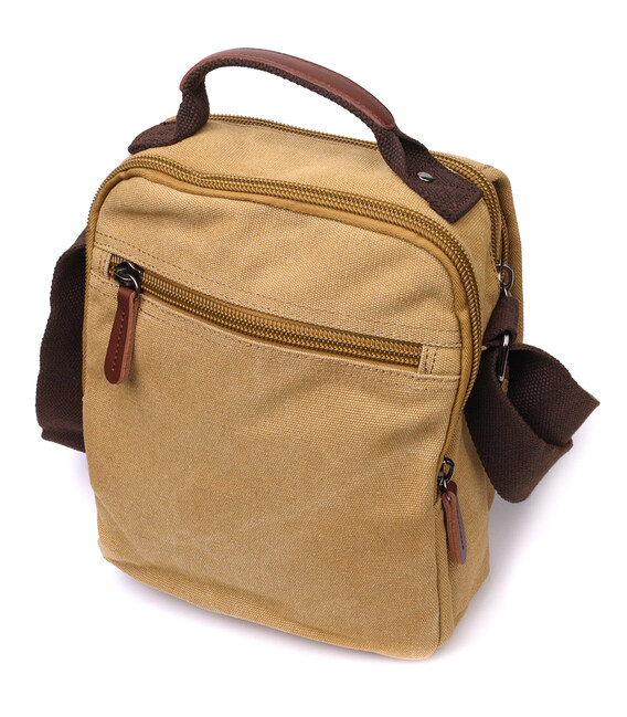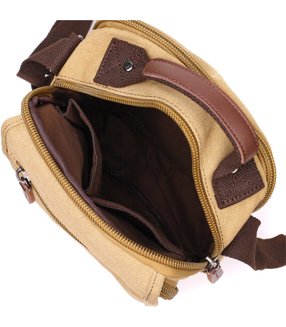 Описание Мужская сумка почтальонка на плечо из плотного текстиля Vintage 22229 Песочный