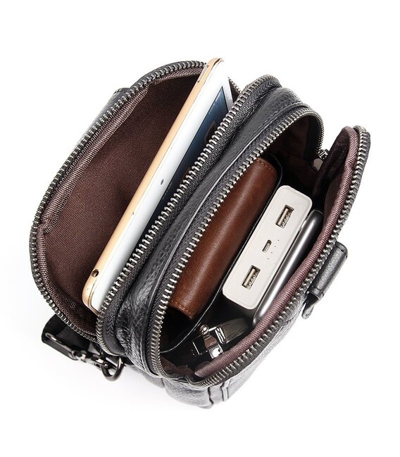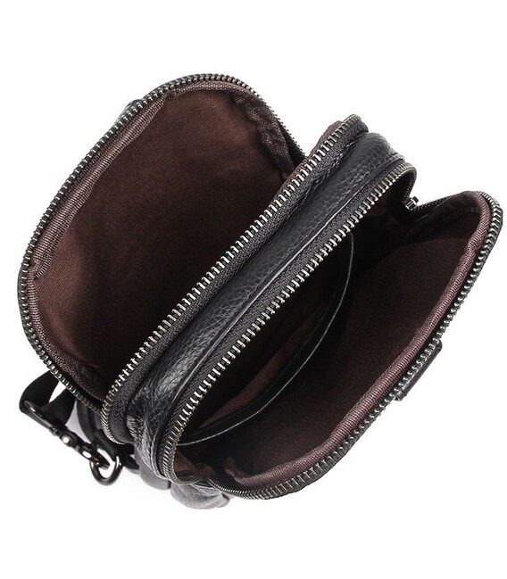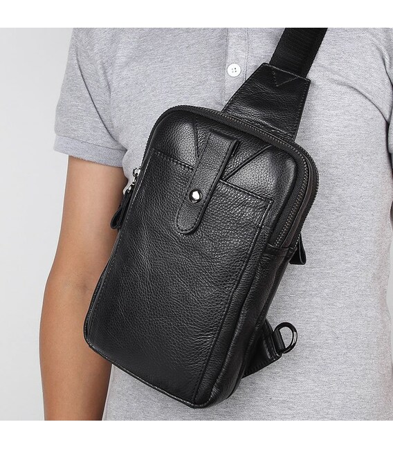 Компактная кожаная мужская сумка из натуральной кожи через плечо. Небольшой размер и легкий вес сумки подкупают клиентов. Модель выполнена в коже флотар, которая совсем не прихотлива в уходе. По краям аксессуар прошит ровной строчкой. Сумка станет прекрасным подарком для любого мужчины.