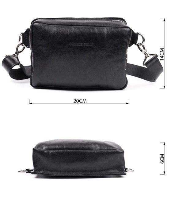 Описание Сумка бананка прямоугольного формата из качественной натуральной кожи GRANDE PELLE 22576 Черный
