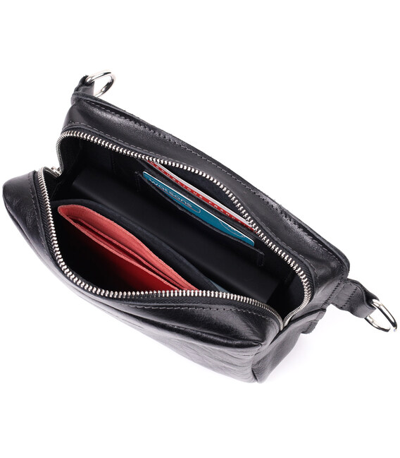 Сумка бананка прямоугольного формата из качественной натуральной кожи GRANDE PELLE 22576 Черный