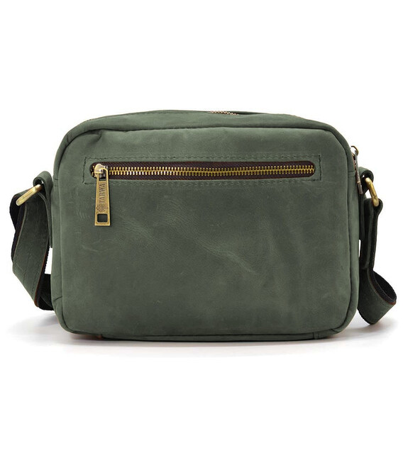 Невелика чоловіча сумка через плече 2 відділення TARWA RЕ-60125-3md зелена-це невелика чоловіча сумка на плече від відомого виробника TARWA, яка є не тільки функціональним, але й елегантним аксесуаром, що втілює в собі стиль casual і практичність. З сумкою зручно пересуватися містом, не переживаючи, що руки будуть зайняті. Сумка RЕ-60125-3md TARWA виконана з якісної натуральної шкіри "Крейзі" матової фактури з пулл-ап ефектом (ефект старіння та подряпин). Чарівна текстура натуральної шкіри надає сумці витонченого вигляду, підкреслюючи її високу якість. Модель приваблює своєю компактністю, модним дизайном та незвичайним насиченим темно-зеленим кольором. Сміливе колірне рішення – одна з сильних сторін цієї сумки. . Цей колір віддають перевагу врівноваженим і спокійним людям, які відрізняються працездатністю і реалістичним змістом. Фурнітура, що використовується у виробі, відрізняється високою якістю та чудовим дизайном. У даній моделі RЕ-60125-3md TARWA застосована фурнітура золотистого кольору, яка надає виробу нотки шику.